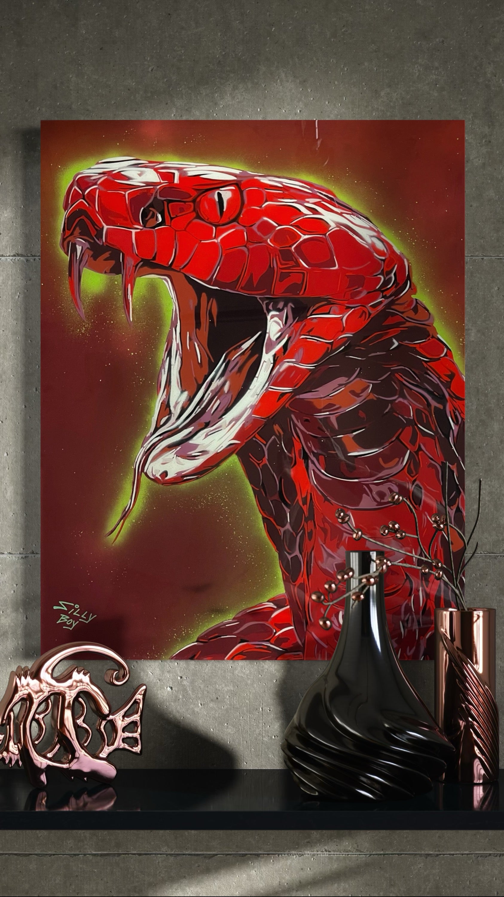 I give you “RITUAL IN RED” — a 22x28 sucker punch to your eyeballs slapped on wood. This 1-of-1 ain’t for those safe souls who cozy up to those beige, snooze-fest landscapes that make you wanna stab your eyeballs with a fork. Nope. This one’s a wild ride through every shade of red — the love that burns you, the rage that blinds you, the power that demands your respect, and that flashing “get the hell out” sign you can’t ignore.
