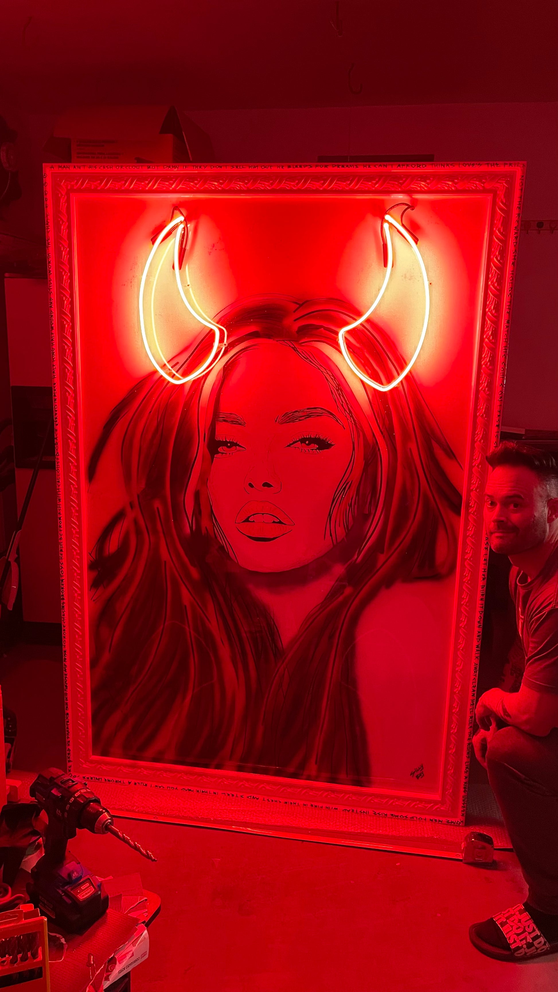 Behold “The Apology You’ll Never Get”—a 48x72 red-lipped siren with just enough attitude to match your heartbreak.